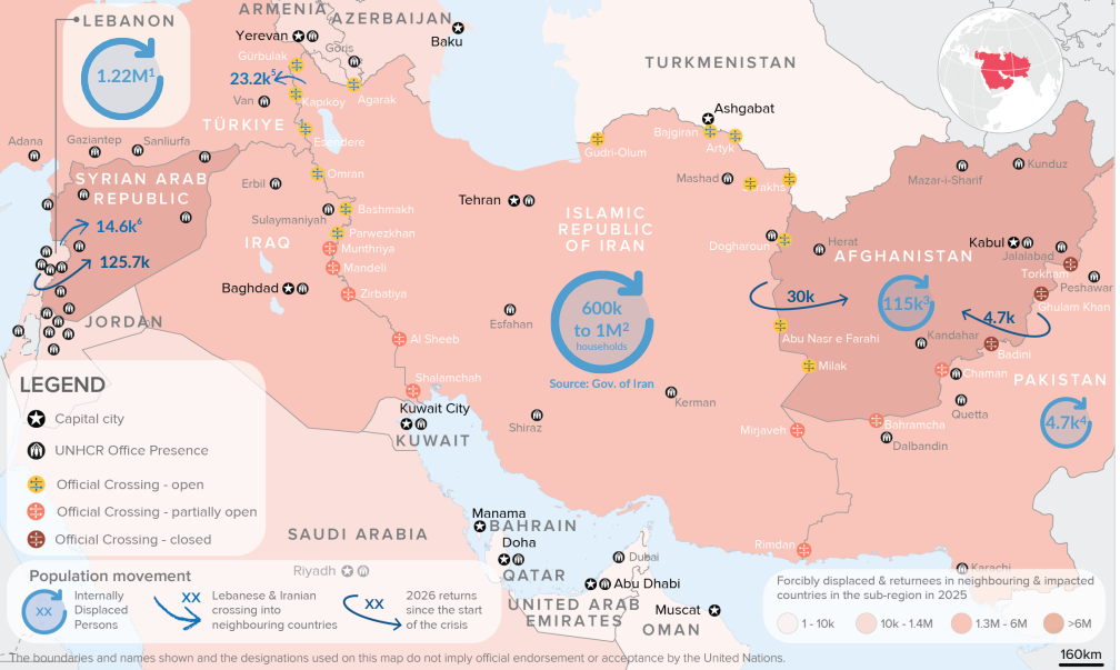 Figure 1: Internally displaced, border crossings and returns since start of the Iran war, as at 17 March