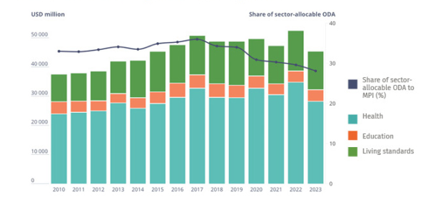 Figure 3: ODA to the dimensions of the Multidimensional Poverty Index, 2010-23*